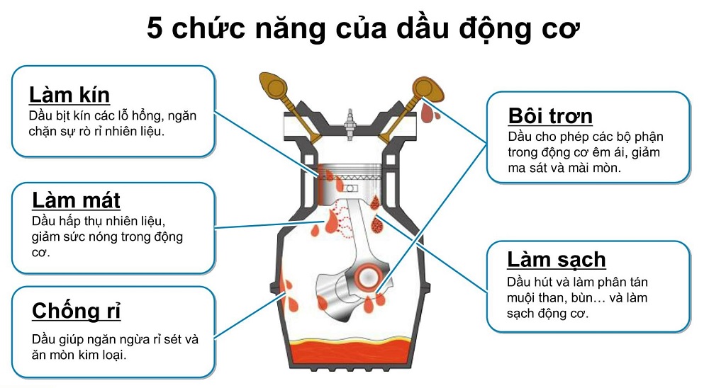 - Bôi trơn, làm mát, chống rỉ, làm kín, làm sạch động cơ